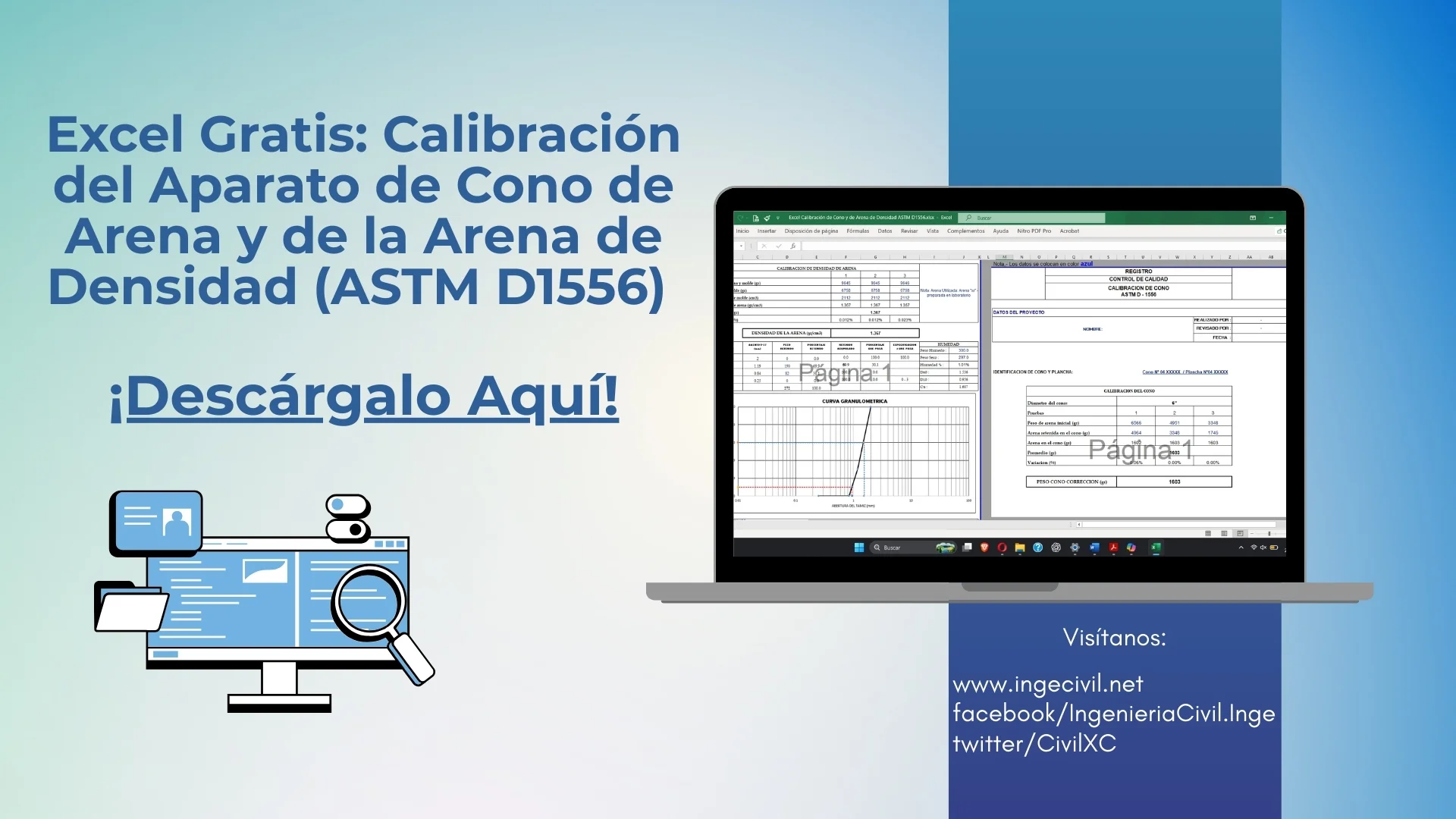 El uso inadecuado del archivo o la aplicación incorrecta del método puede generar errores en la determinación de densidad y peso unitario del suelo, afectando el control de calidad de las obras. El archivo puede obtenerse a continuación: Excel de Calibración del de Cono de Arena y de la Arena de Densidad según ASTM D1556 y utilizarse en Microsoft Excel, sin requerir complementos adicionales.